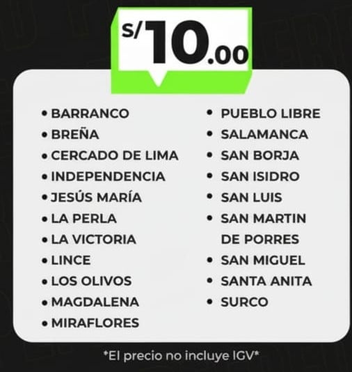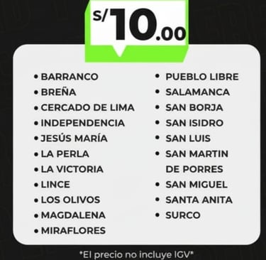 Pago del servicio: Puede ser cobrado el mismo día del recojo antes de las 11:00am.