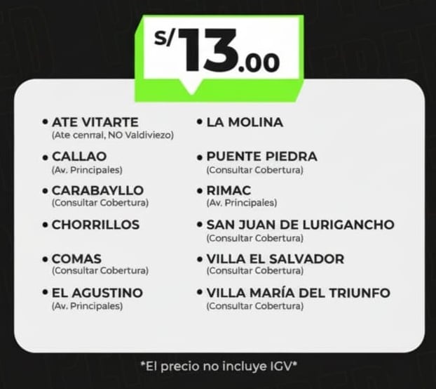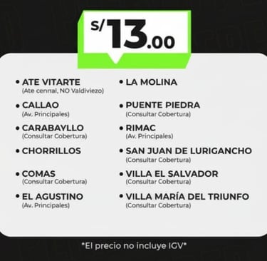 Cobertura: Las tarifas aplican dentro de nuestras zonas de cobertura vigentes. Para destinos especiales o fuera de rango, consultar con un asesor.